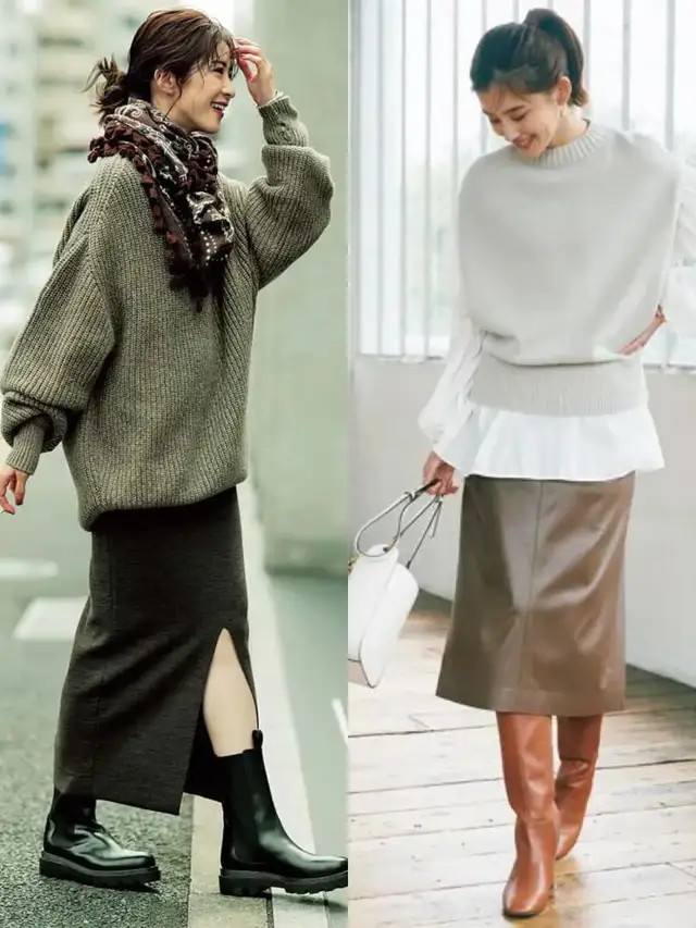 或是穿着一件微宽松的毛衣,搭配上灰色的直筒开叉半裙,脚上穿了一对玄色马丁靴,这样的搭配有一种慵懒随心的脸色气味。