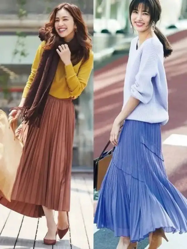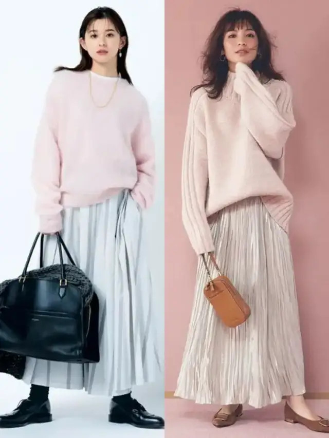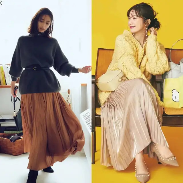 春日穿它,想要别致又有氛围感,鹅黄色针织毛衣最是吸睛,搭配地面色百褶伞裙,脚踩一对同色系的浅口高跟单鞋,和善亮堂,优雅大气。