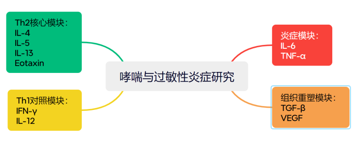 现在临床和筹办中遍及合计,IL-4、IL-5、IL-13是驱动哮喘的垂危Th2细胞因子,亦然生物制剂颐养的垂危靶点,因此,多因子检测 panel 时常围绕Th2免疫轴张开。