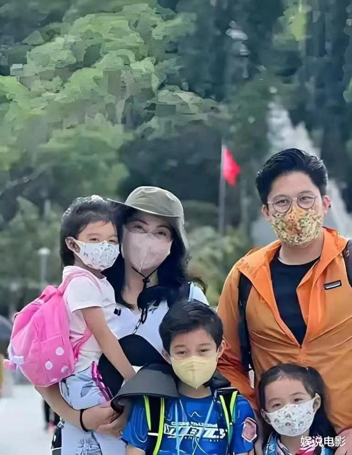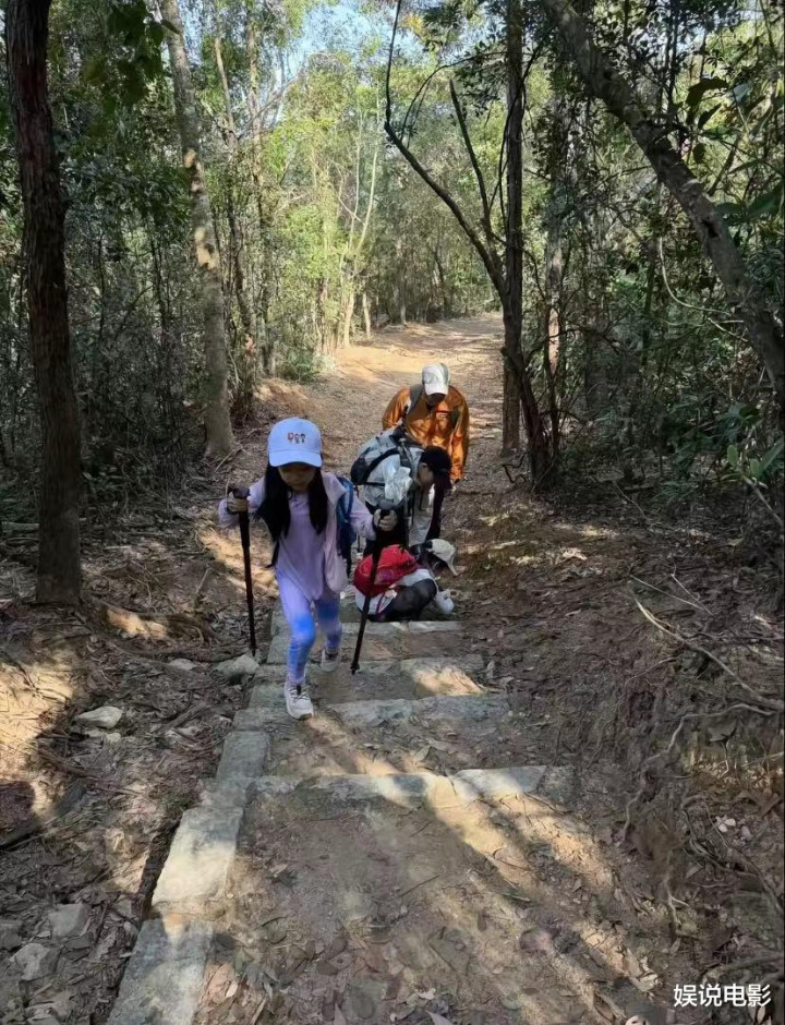 bbin 霍启刚郭晶晶一家五口又去爬山, 孩子们背我方的包, 身边莫得保镖