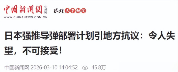 日本强推导弹部署指标引所在抗议:令东谈主失望,不行经受!中国新闻网 2026-03-10