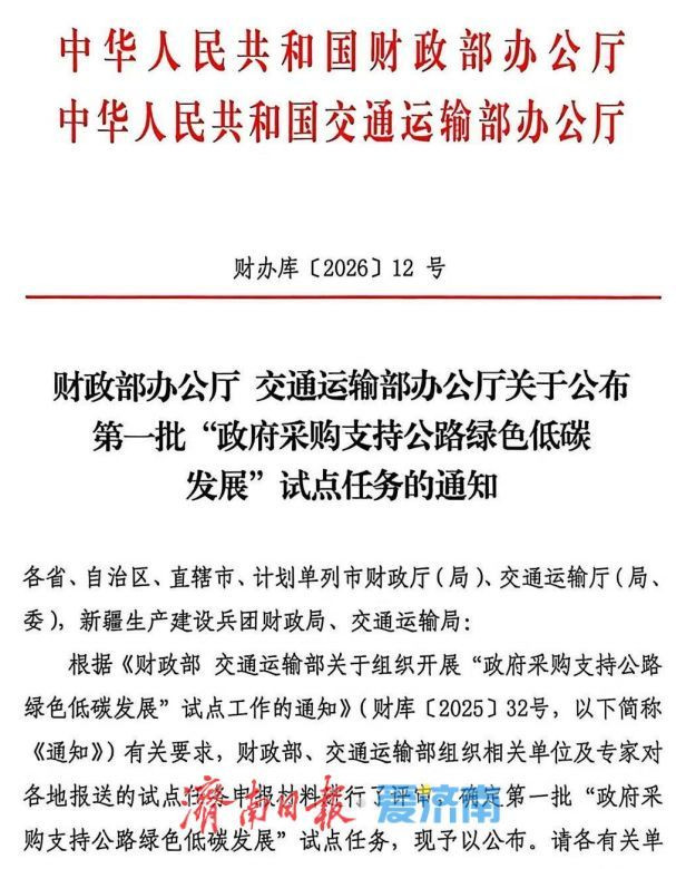 近日,财政部、交通运载部集合公布了第一批“政府采购支握公路绿色低碳发展”试点任务,济南市G308文石线章丘水寨至黄家段改建工程胜利入选,系山东省两个入选花式之一。这记号着我市在以政府采购引颈公路绿色低碳转型、就业“四港三区”联动发展上迈出关键一步。