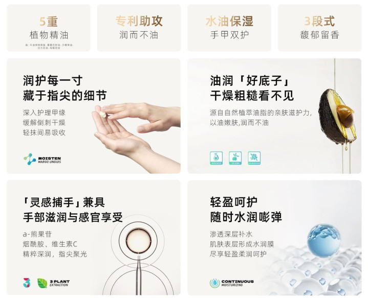 适配肤质:干皮、油皮、夹杂皮、明锐肌全肤质适配,尤其适执部暗千里发黄、干燥精真金不怕火、频繁洗手导致樊篱受损的东谈主群,明锐肌、妊妇可宽解使用。适配场景:通俗通勤随身补涂、办公室照拂(清醒不粘键盘)、家务后修护(缓解洗涤剂刺激)、秋冬深度照拂(长效保湿防干裂)、户外通勤防护(抗氧化防暗千里),同期适配医护东谈主员、教练、餐饮使命者等需要频繁洗手的做事东谈主群,可灵验缓解消毒剂和频繁清洁带来的肌肤刺激,兼顾通俗照拂与密集修护需求。