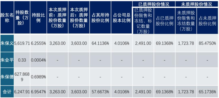 来自公告:朱保义偏激一致行径东说念主所握质押股份情况