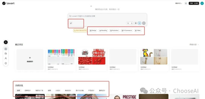 Lovart莫得区分上传的附件,尺寸在画布中选拔或者平直套用别东谈主的模板(灵感)。