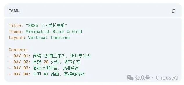 这里就要讲到结构化的方式了。不是咱们脑中第一响应的各级别标序,也不是对Gemini说“帮我将以下这段笔墨结构化”,而是使用YAML方式。