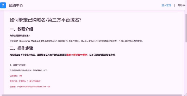 登录乔拓云【企业中心】,参预【经管企业邮箱】—【邮箱域名经管】页面,复制对应的理会记载值。