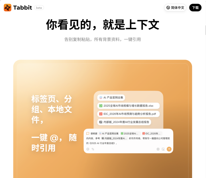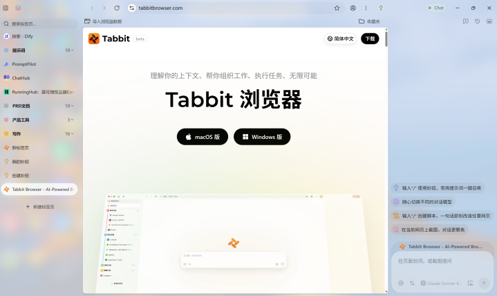 Tabbit把所有这个词操作的进口调解成了一个”万能输入框”——你不需要在地址栏、搜索框、AI对话框之间切换,径直用当然语言说你想作念什么就行。