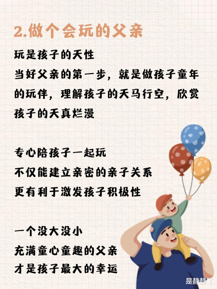 玩是孩子的天性,亦然父亲与孩子诞生亲密关联的捷径。一个会玩的父亲,会蹲下来和孩子全部滚泥巴、吹泡泡,致使低能地师法动画片扮装。这种“没轻没重”的互动,不是豪侈时分,而是给孩子最佳的礼物。孩子会在笑声里显然:爸爸不是无出其右的“泰斗”,而是可以全部疯、全部闹的伙伴。这种亲密感,会成为孩子一世的安全感开始。违反,那些总说“等我忙完”的父亲,等来的频频是孩子长大后的一句“你从来皆不陪我”。