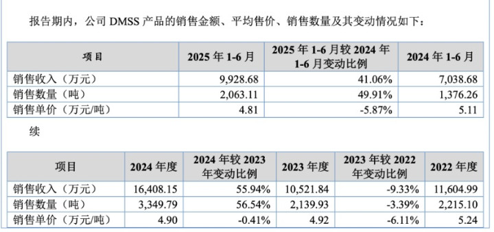 同业业可比公司的数据对比雷同折射出其在产业链博弈中濒临的压力。与同业业公司比较,彩客科技居品的议价空间呈现走弱趋势。招股书数据显示,主打居品DMSS的平均销售单价已从2022年的5.24万元/吨下滑至2025年上半年的4.81万元/吨;DMAS单价也从2.25万元/吨降至1.83万元/吨。有行业接头东谈主士指出,在单价下行且存量开发利用率偏低的客不雅事实下,强行鼓励大限度本钱开支只会加快里面资金的耗尽。