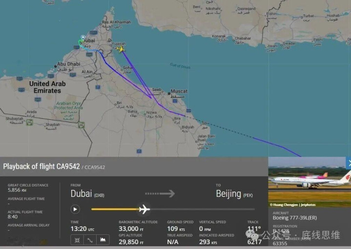诚然迪拜机场不错起降,关联词起降自己就有着极大的不细则性。哪怕飞机凯旋降落在迪拜机场了,能不成准时走,致使能不成走王人是问题。3月7日,国航CA9542航班从迪拜腾飞准备飞归国内时,实质腾飞时分就比权术腾飞时分延误了四个半小时。况且从FR24上的ADS-B定位轨迹中不错看出,在飞到阿曼上空时CA9542飞机还遭受了GPS侵略,使得飞机的定位坐标短时天职发生偏移。