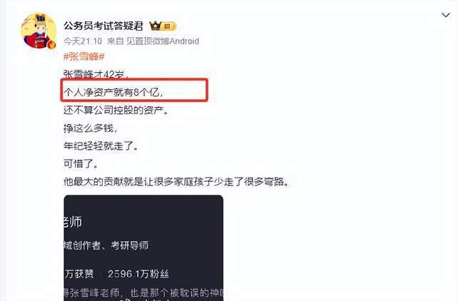 据悉,张雪峰生前不单是是考研名师,更建造了多个收益颇好的公司,总的照旧率先了上亿元。