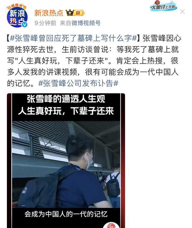 波音体育官方网站 曝张雪峰升天细节!倒在跑步机上,留上亿入款,生前已思好墓志铭