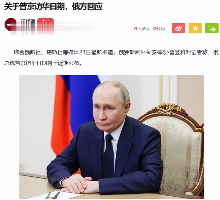 3月23日,俄副外长鲁坚科对外布告:普京访华的具体时分“很快公布”。