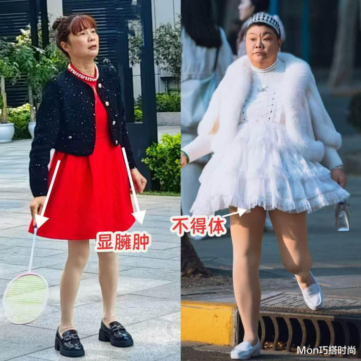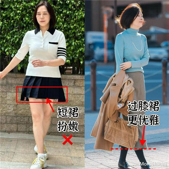 再来说百褶裙吧,这然则好多年青小密斯最爱的一种裙装,到了春夏令节穿在身上,别提何等的芳华飘溢了,可上年事的女东说念主果真独霸不了这种裙子,除了百褶裙穿在身上扮嫩感彰着,它对躯壳的条目也很高,超短的百褶裙穿在身上本就增多了露肤度,再加上百褶裙的裙摆是炸开的,一不注重就容易走光,实在是有点不多礼,胯宽腿粗的中年女东说念主穿不得,腿细的中年女东说念主也最佳别穿。