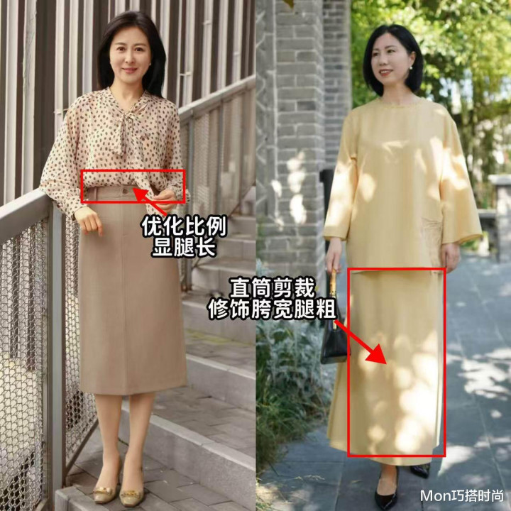 太紧身简略太宽松的裙子也不顺应中年女东说念主穿,紧身裙看似修饰了弧线,但也会勒出我们身上的赘肉,尤其是你的肚腩、胯宽问题,完全藏不住,而太宽松的裙子也会显得扩展感强,拉宽我们的躯壳。