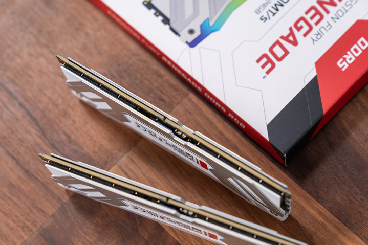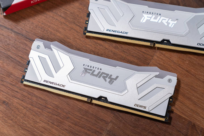 金士顿 FURY Renegade反水者DDR5 CUDIMM内存的散热片与内存颗粒紧密贴合,顶部还作念了由外向内从高向低的坡度和开孔想象,和洽机箱风说念或者更好地将里面热量带走。