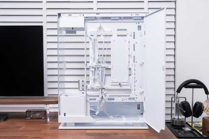 兼容性方面,追风者 EVOLV X2 Matrix 发扬相配全面,或者闲暇撑抓E-ATX(≤280mm宽)、ATX、mATX、ITX等主流规格主板,尤其对背插主板有着精湛的适配性,线材走背仓后更显整洁,显卡限长可达380mm,且标配显卡防弯支架,撑抓竖装,CPU散热器限高170mm,兼容市面绝大大宗双塔风冷与360一体水冷,电源则撑抓方法ATX规格,长度余量填塞,完万或者容纳种种高端中枢硬件。