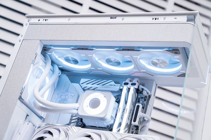 采取了流行的双仓海景房结构,将电源与硬盘仓独处置于底部,确保了主舱视线的实足洁白。机箱高下部的电扇位采取了独到的可拆卸托盘想象,名义相通覆盖织物材质,与正面屏幕格调高度调理,进一步强化了举座的一体感。这种想象不仅普及了视觉好意思感,更让装机过程变成了一种个性化的创作体验,使冰冷的金属硬件领有了与用户互动的人命力。水冷与电扇撑抓上,顶部可安装最大360mm冷排,底部设有3×120mm、后置设有1×120mm电扇位,不外仅撑抓120mm规格电扇,不兼容140mm,且顶部360冷排无法夹汉堡,这亦然为了兼顾外不雅一体性所作念的弃取,但举座足以知足大部分高端主机的安装需求。