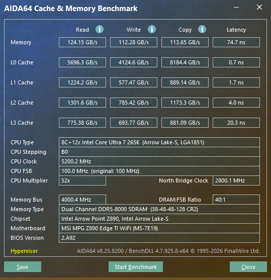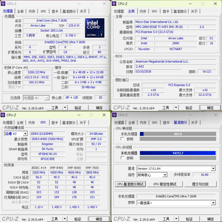采取酷睿 Ultra 7 265K + 微星 MPG Z890 刀锋钛 主板为中枢平台,Ultra 7 265K,20 核 20 线程,基础频率 3.9 GHz,最大睿频 5.5 GHz、二级缓存 36 MB,三级缓存 30 MB。改革的chiplets分离式模块化架构通过D2D(Die-to-Die)高速互联通说念,结束了对异构操办模块的精确超频调控,联系于溢价严重的AMD X3D系列,可谓极具性价比。