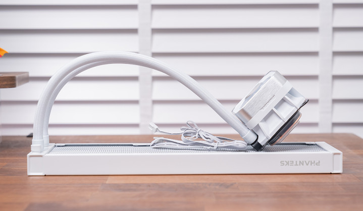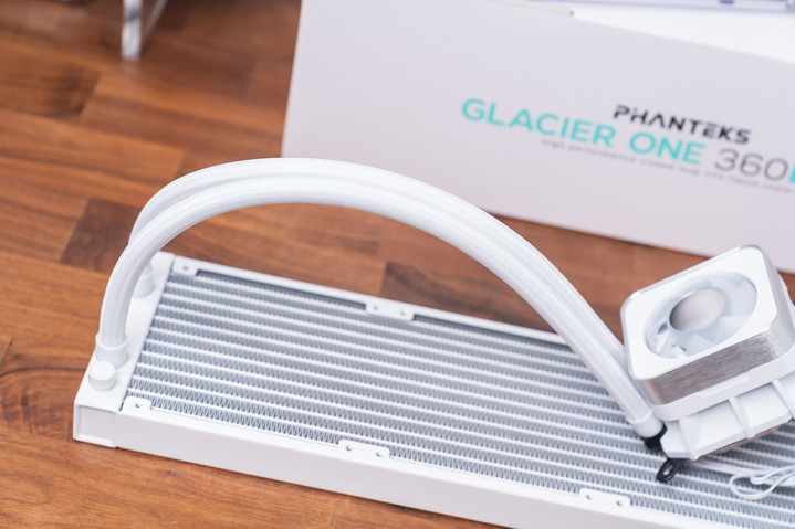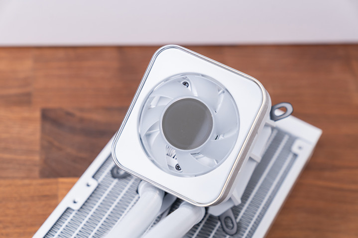 配备方法360mm铝制冷排(397×120×27mm),兼顾了散热遵守与平凡的机箱兼容性。里面采取高密度微通说念铜底和洽优化胪列的铝制鳍片,显贵普及了热交换效率。框架结构经过刚性强化,边际进行倒角贬责以防割伤,同期确保在锁紧螺丝时不易形变。出厂预装电扇后,冷排与电扇边框联络紧密,展现了精密的安设公役适度。