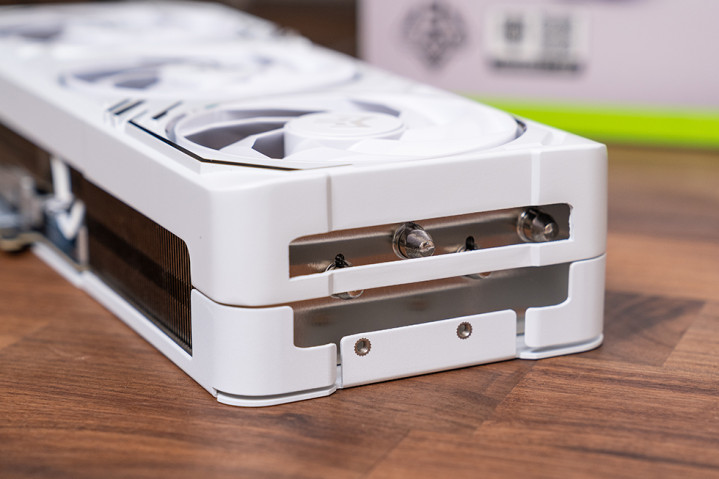 影驰 GeForce RTX 5080 金属内行 白金版 OC显卡在散热方面采取新一代金属内行冷光星β散热系统,从显卡尾端不错明晰看到热管,里面共有五条8mm热管和两条6mm镀镍复合热管,通过回流焊合工艺和合金压铸中框加强件,带来超规格散热器组件无惧高温。