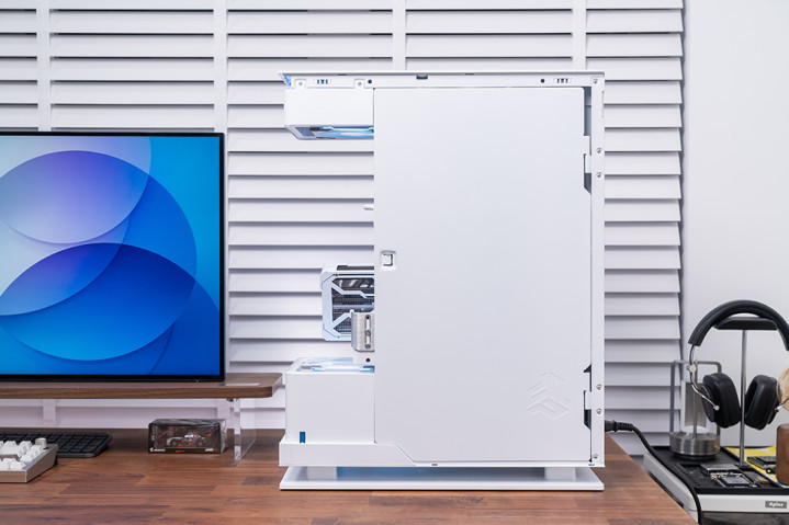 追风者 EVOLV X2 Matrix 在外不雅上延续了Evolv系列记号性的极简好意思学,采取558×228×454mm的中塔尺寸,搭配SGCC钢材,曲直双色可选,机身作念工塌实。机身和洽三面高透钢化玻璃,将通盘固定件与接口隐秘于无形。营造出一种悬浮般的洁白科技氛围,让机箱自己成为桌面上会“呼吸”的艺术品。
