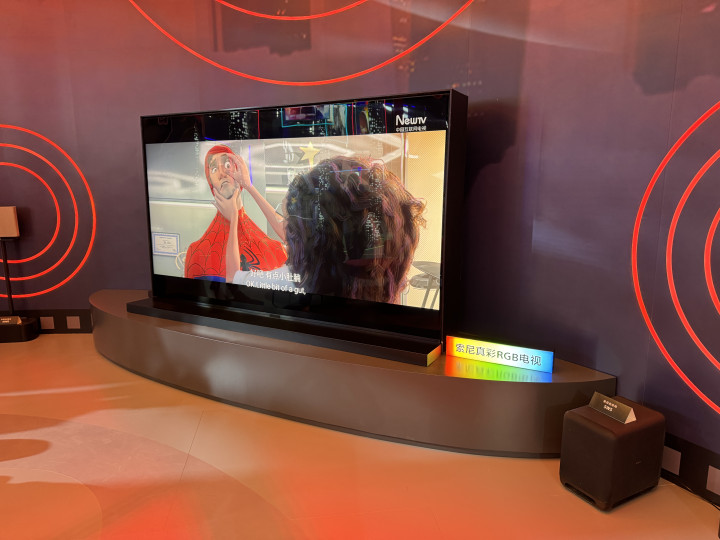 此外现场最大的115英寸索尼RGB真彩电视让咱们也有很深的印象,这台电视一直在反复播放蜘蛛侠动画的片断,而且是片源是用的国内流媒体,但咱们依然能在这样大的电视上,感受到画面的质感和细节,很显然索尼新一代RGB-Mini LED电视依然在画质优化上,极端是一些码率相对低的视频上,保握了我方很高的水准。