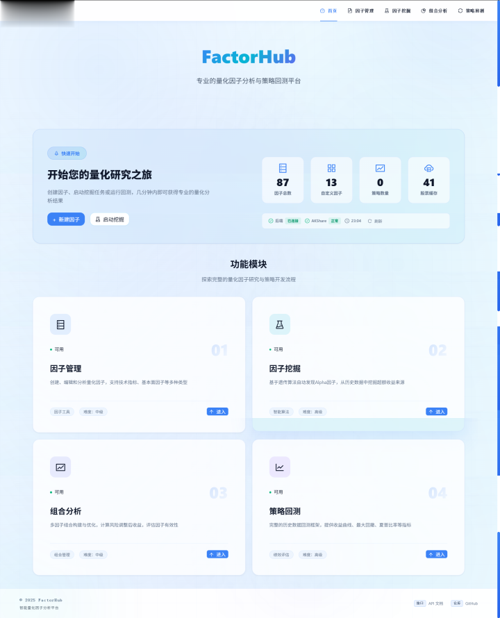 基于这个理念,FactorHub当前也曾发展成一个完整的当代化量化因子分析平台,专为中国A股市集遐想。它的中枢价值体当前四个撑执: