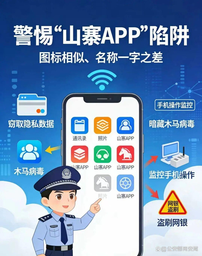 跟着出动互联网的普及,各样生计办事APP车载斗量。网警发现,一些盗版软件成就者会制作与官方应用图标相似、称号仅一字之差的“盗窟APP”。这些“李鬼”软件不仅可能窃取手机里的通信录、相片等心事数据,还可能潜伏木马病毒,以至进行账户盗刷。