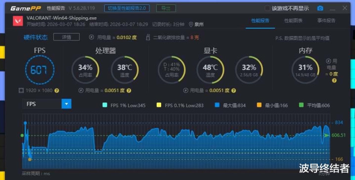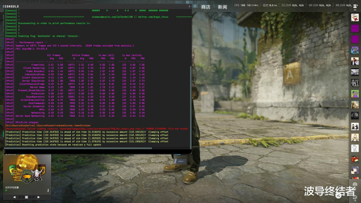 接下来再来望望几款主流网游的情况,CS2之前是被V社径直指名把CSGO的APPID给挤掉了,当今地位稳了,前阵子CSGO又暗暗摸摸换了新的ID回商店了。用创意工坊的Benchmark跑测试,平均帧率398.2,1%Low帧也有175.8,足以叮嘱超高刷竞技游戏。