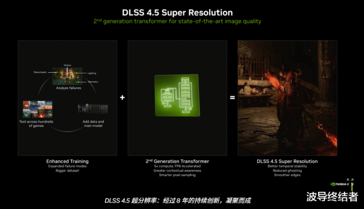 之前50系显卡使用DLSS4仍是有一段时间了,而在本年年头,NVIDIA更是公布了最新的DLSS4.5本领。升级到了第二代Transformer模子,将画质与展望智力以及准确度都进一步进行了晋升。表面上从20系到50系的RTX显卡都能复古,但受限于架构与算力戒指,40系和50系的期骗成果会更好。