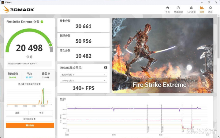 在2K区别率的Fire Strike Extreme名堂测试中,概述得分20498分,显卡得分20661分,中高殊效通顺跑一下主流射击游戏高刷毫无问题。