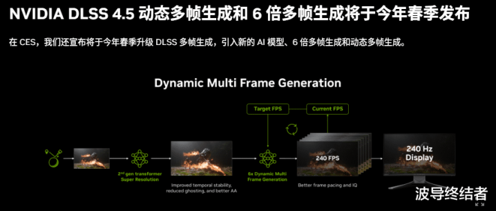 而关于帧数晋升最大的帧生成,DLSS4.5更是升级到了6倍多帧生成,况且复古不同场景下的自顺应,以保证游戏在高帧率与低延伸之间获得更好的均衡。