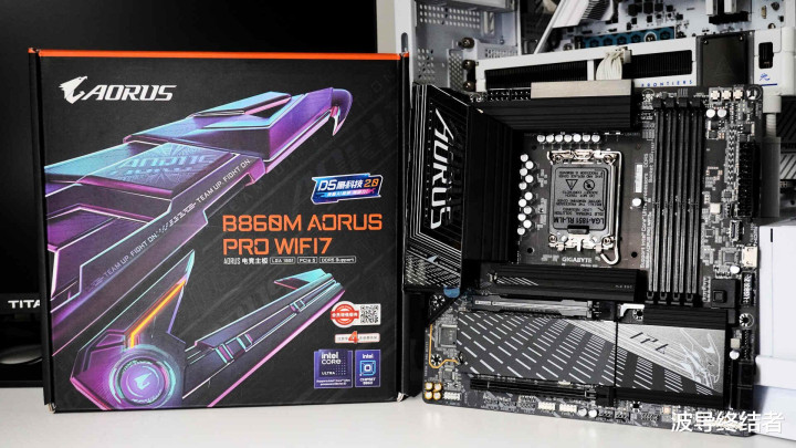 本次测试的平台为Intel Ultra 265K,技嘉电竞雕B860M AORUS PRO WIFI7主板,板U套只消2000多,性价比相等高。当作系列主板的旗舰型号,这块板子各方面的设立和用料基本都拉满了,使用了12+1+2相供电,8层的劳动器级PCB,满满当当的全粉饰式散热装甲,跑什么设立都不在话下。