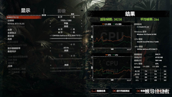在古墓丽影阴影的测试中,预设最高等画质,可以跑到244的平均帧率,关于一款非竞技类的动作游戏来说,帧率和画面成果均仍是达到顶峰。