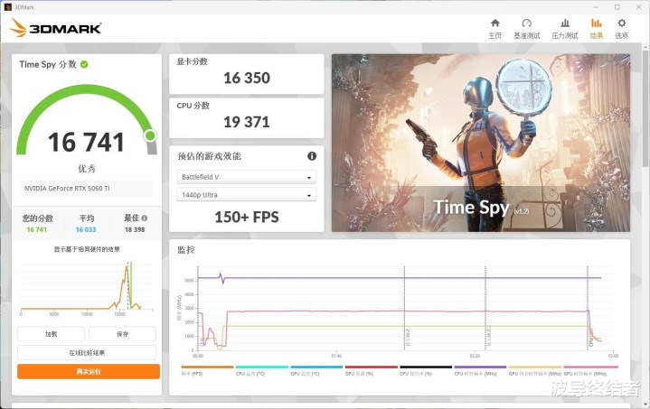 在DirectX 12名堂Time Spy的测试中,默许基础等于2K起跳,概述得分16741分,显卡分数16350,新的网游出来跑跑2K高刷毫无压力。